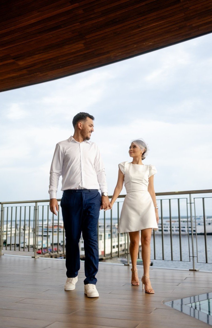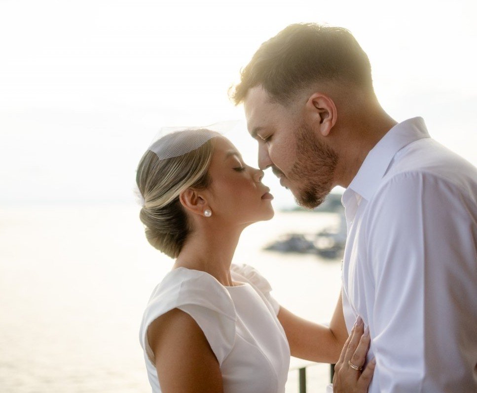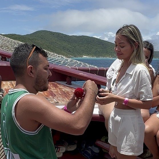 Os dois já tinham tudo, mas faltava um passo muito importante: a realização de um sonho para cada um deles, o casamento. Em 2023, o assunto já fazia parte das conversas, mas Kamylla nem imaginava que tudo já estava sendo planejado. Leonardo pensou em cada detalhe e preparou esse momento em uma viagem ao Rio de Janeiro, mais especificamente em Arraial do Cabo. O palco do pedido foi um barco com cerca de 60 passageiros, incluindo sua família e o filho deles. Todos já sabiam o que estava prestes a acontecer, menos Kamylla. A surpresa foi guardada para o momento certo, sob o céu encantado de Arraial do Cabo, cercados por amigos, família e pelo brilho do mar, em frente à imagem de uma Santa, onde se acredita que quem passa naquele local, nunca mais se separa. Foi lá que o pedido aconteceu. Leonardo ajoelhou, o coração disparou… e Kamylla disse o “SIM” mais fácil e mais certo de sua vida.